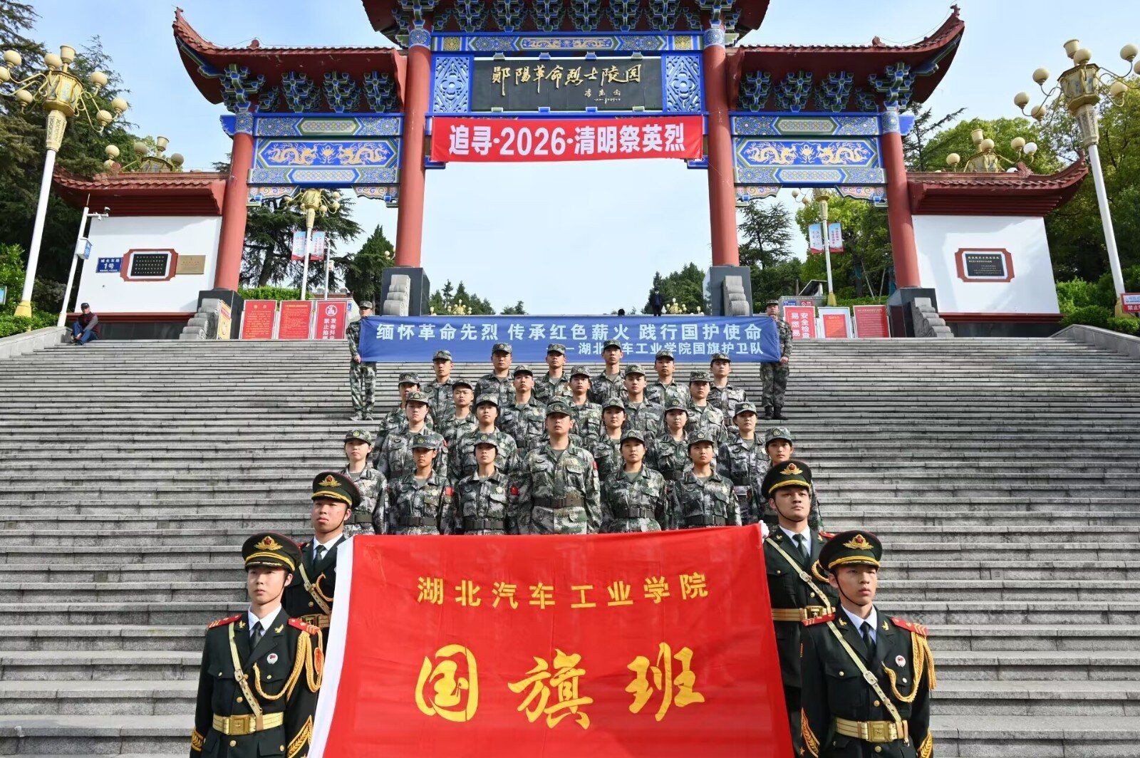 湖北汽车工业学院国旗护卫队赴郧阳区革命烈士陵园祭扫